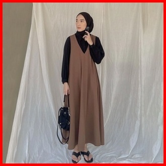 Overall Dress V Neck Material Bahan Woolpeach Premium S M L Xl Xxl