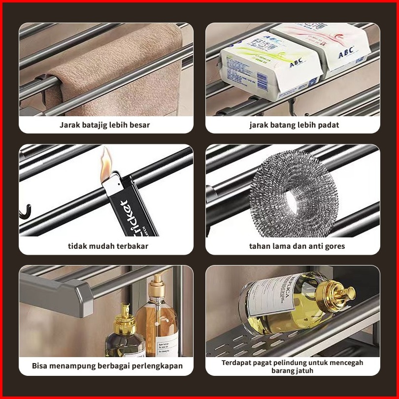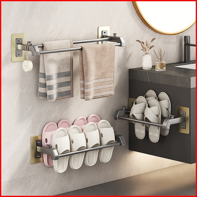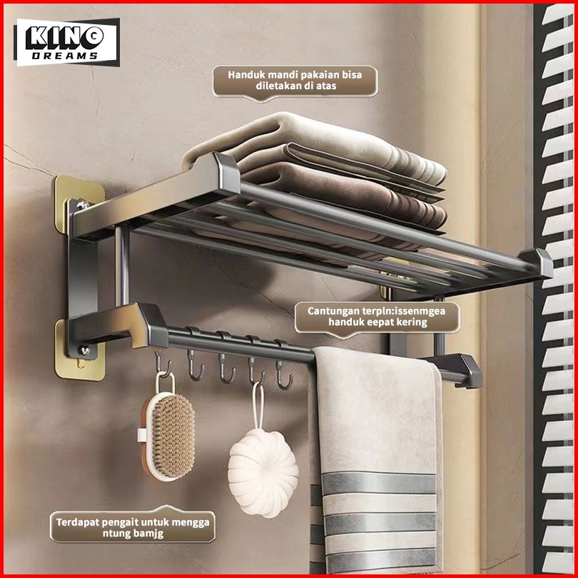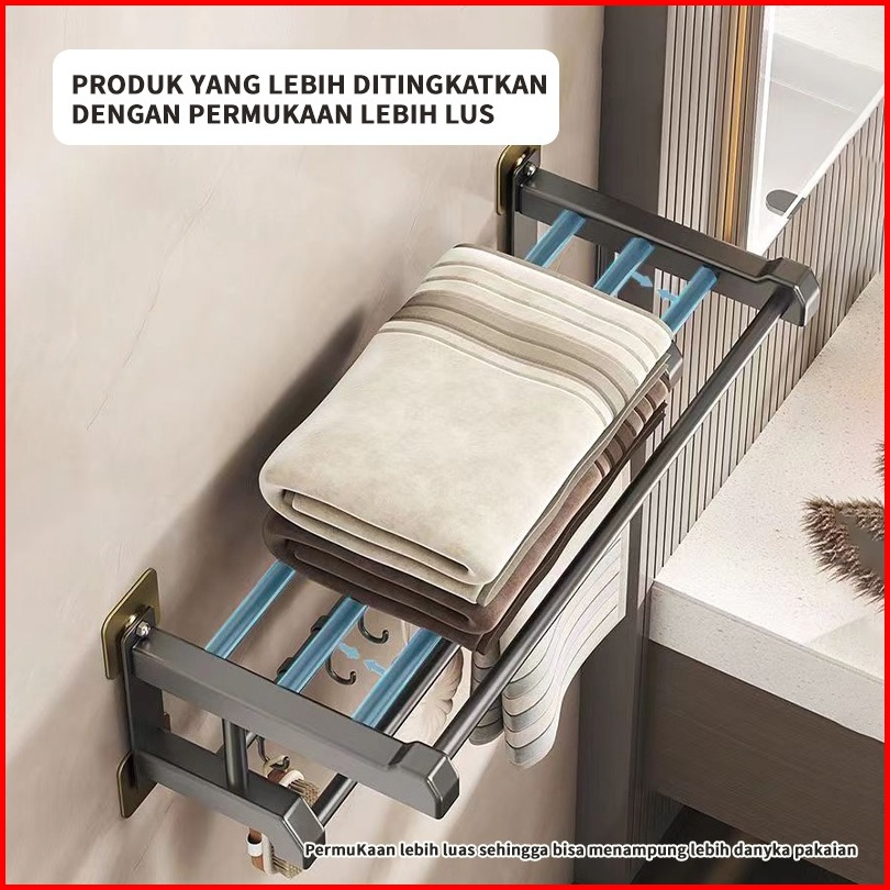 Rak Kamar Mandi Dinding Rak Jemuran Kamar Mandi Alumunium Towel Bar Rak Tempel Gantung