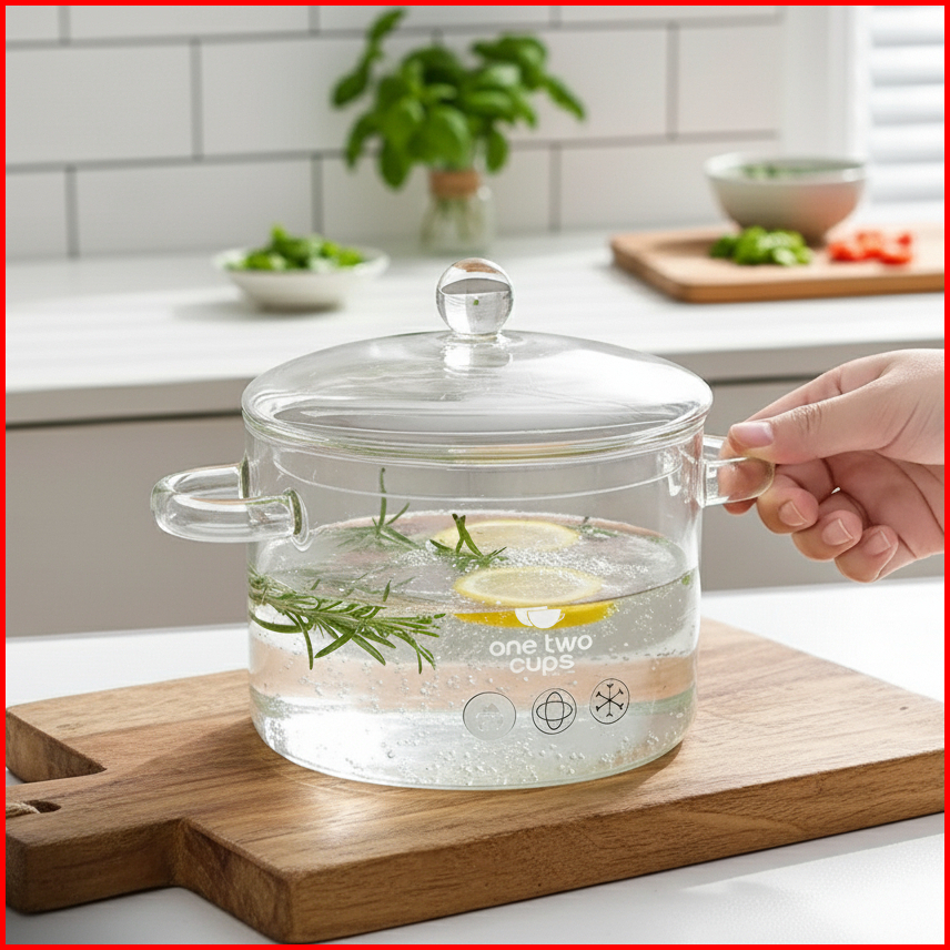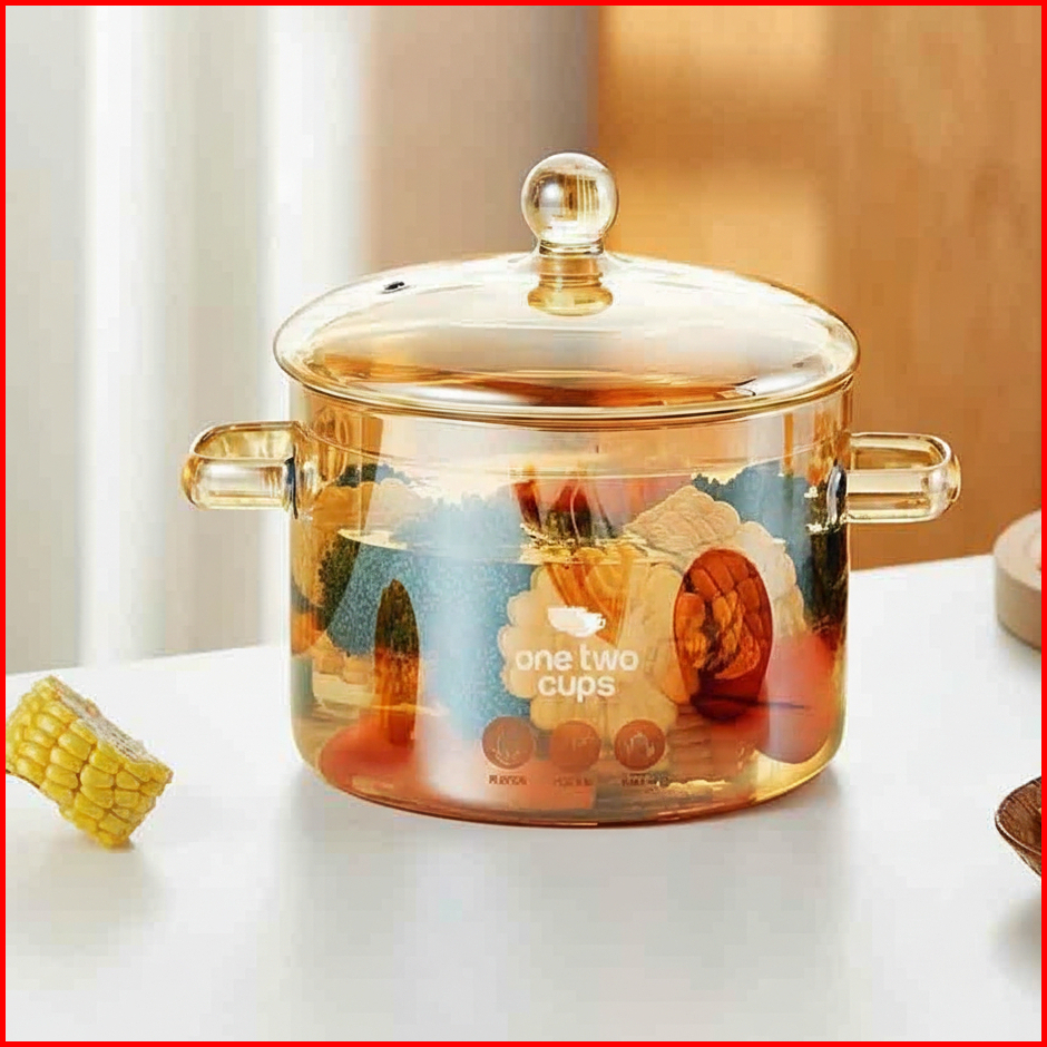 Panci Kaca Borosilicate Transparan Tahan Panas Glass Cooking Pot Estetik Untuk Sup Rebus