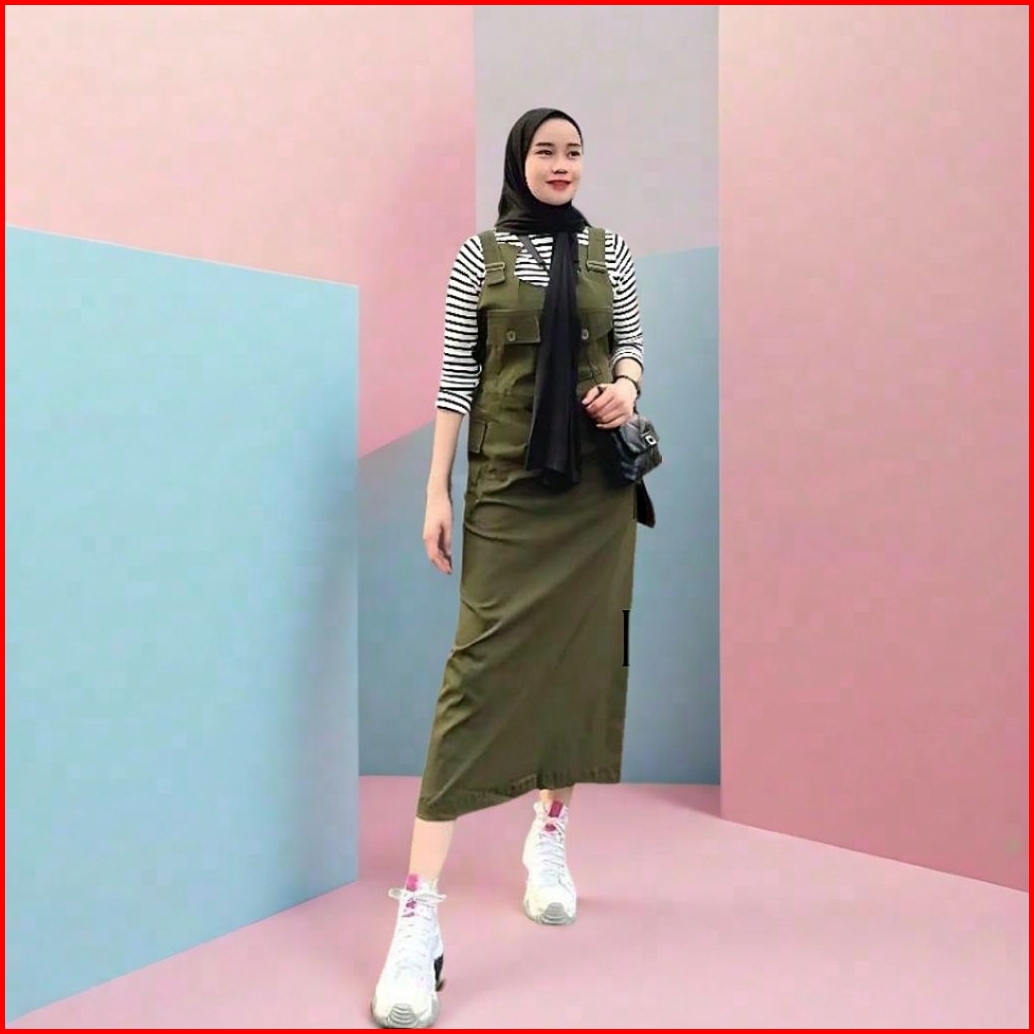 Hicoo Elizabeth Overall Rok Cargo Wanita Katun Twill Combed Kekinian Korean Style