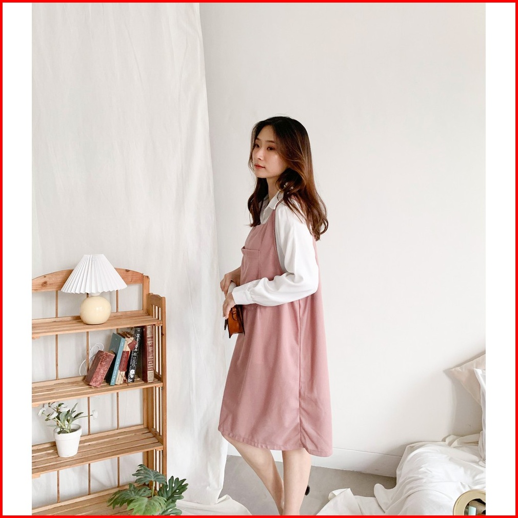 Yoenik Apparel Fadwa Overall Dress Dusty M16261 R65s2 - Overall Korea Midi Dress Waffle