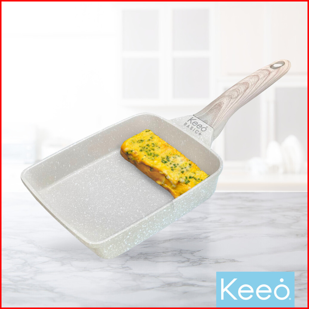 Keeo 18 Cm Tamagoyaki Tamago Pan Wajan Penggorengan Kotak Omelette Telur Anti Lengket Marble Granit Krem
