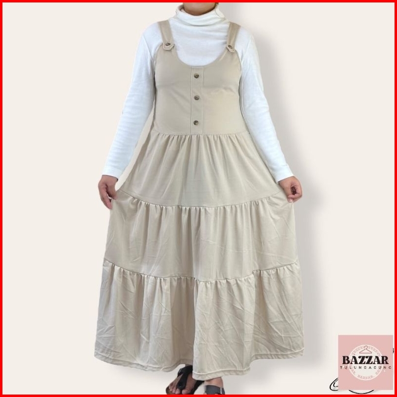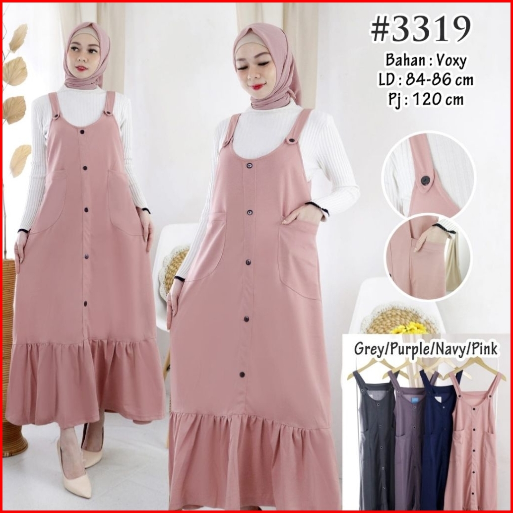 Overall Dress Wanita Rok Panjang Rempel Bawah Overall Saku Murah Kekinian Overall Muslim Wanita