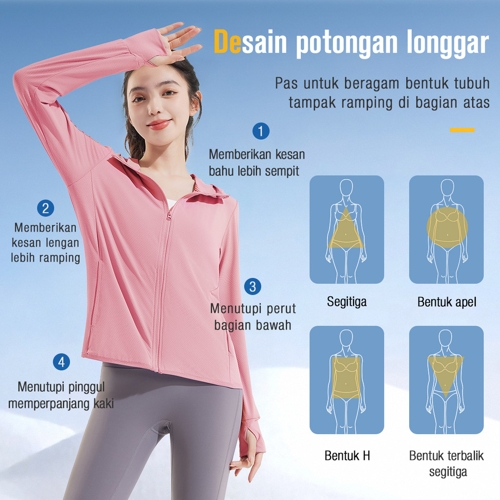 Jaket Wanita Anti Uv Upf50+ Jaket Dingin Tipis Cepat Kering Untuk Outdoor & Gym (J001)