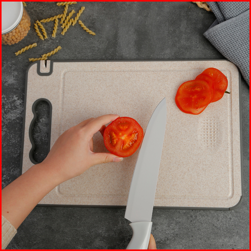 Loooopy Talenan Stainless 2 Sisi Alas Potong Double Sided Chopping Board Jerami Chopping Board Multifungsi Dengan Pemaru