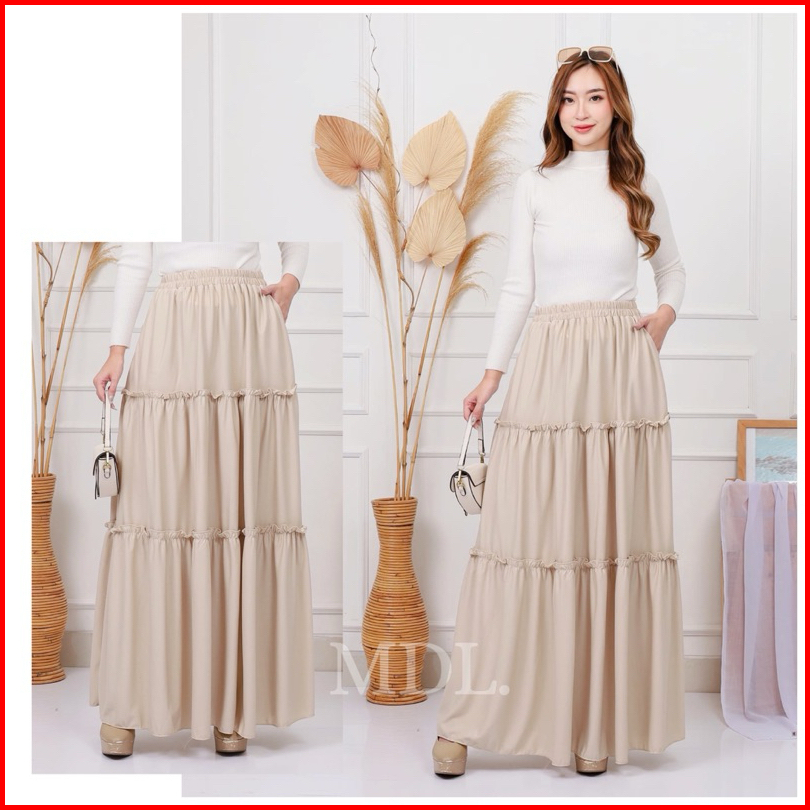 Rok Susun Mayung Premium Basic Skirt Belle Skirt Rok Panjang Murah Kerja Ngantor Kuliah Casual Ootd