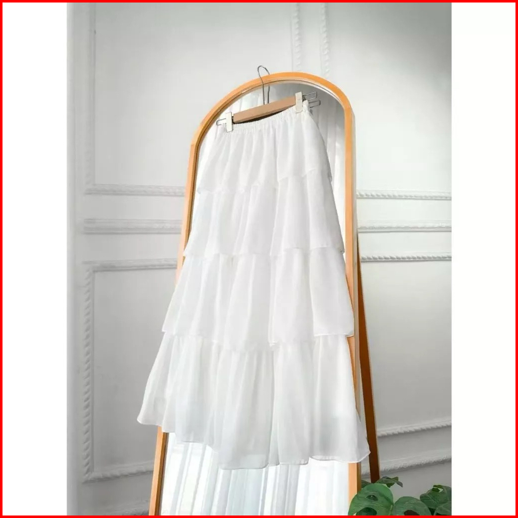 Diskon Heidi Rok Ceruty Susun Empat 4 Maxi Skirt Rufla Ruffle Rempel Full Midi Termurah Eksklusif