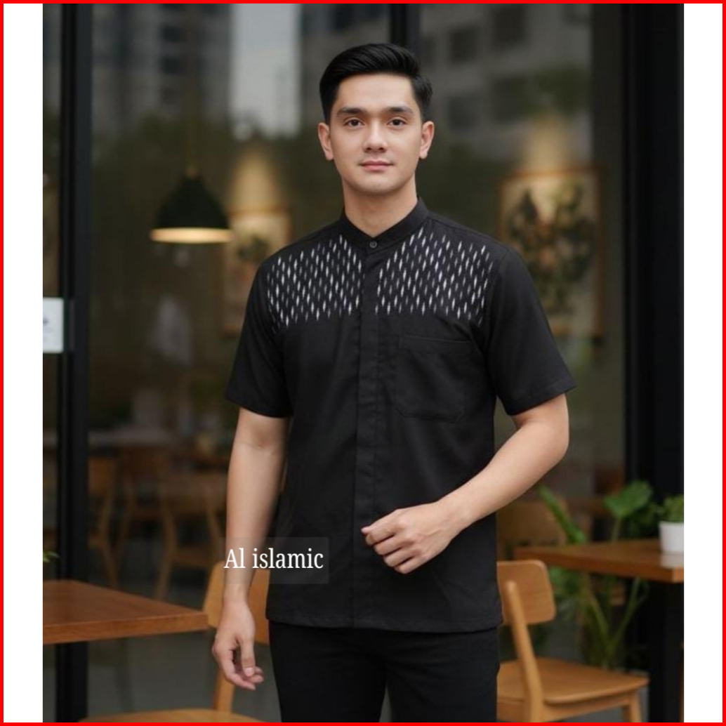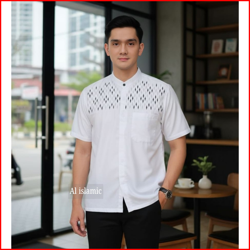 Alislamic Baju Koko Pria Lengan Pendek Kemeja Koko Bordir Katun Premium Reguler Fit