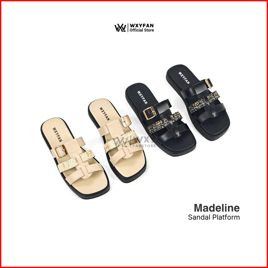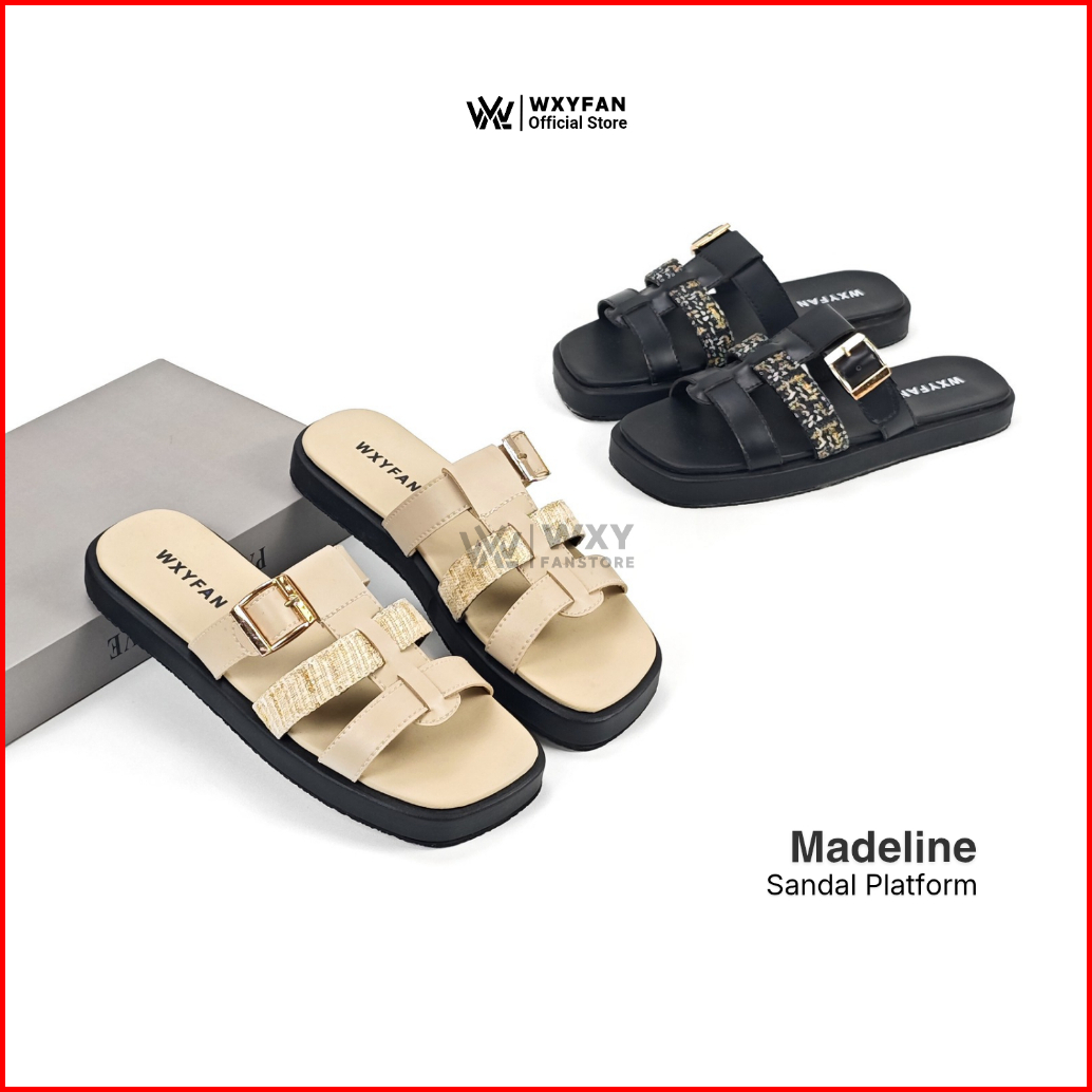 Wxyfan Sandal Platform Wanita Rajut Tali Gesper Sendal Slop Cewek Korean Style Slip On Kekinian Empuk Terbaru Madeline