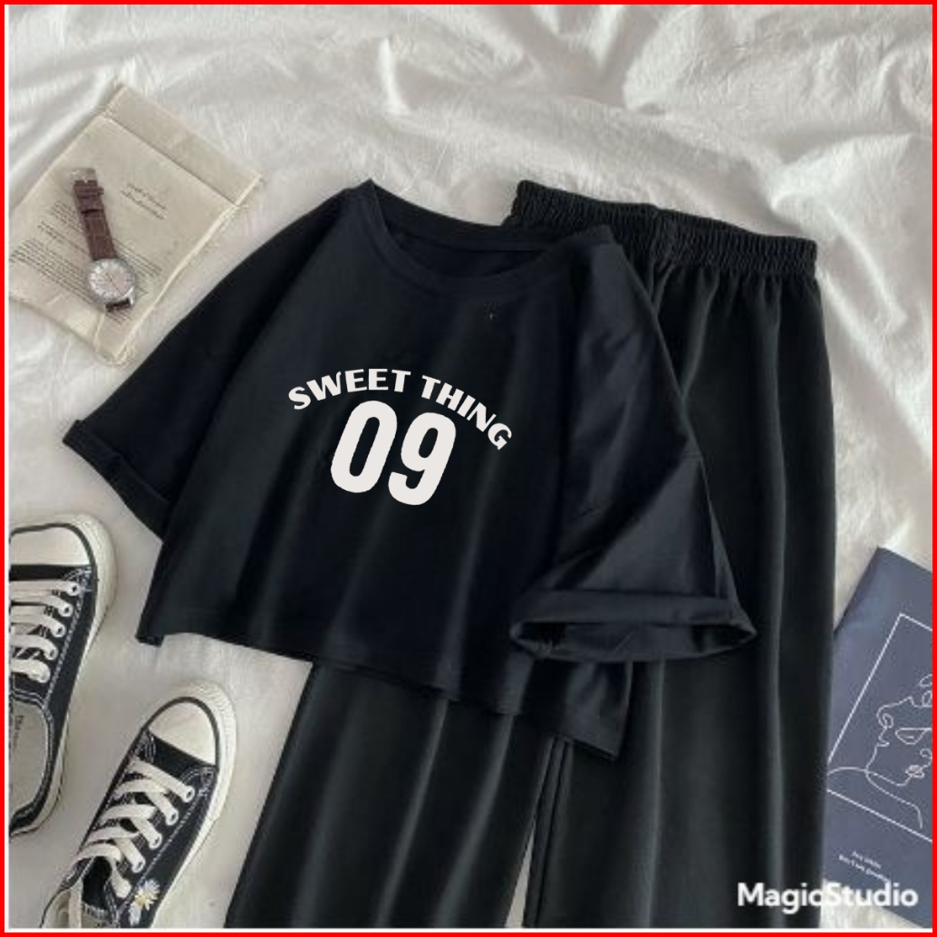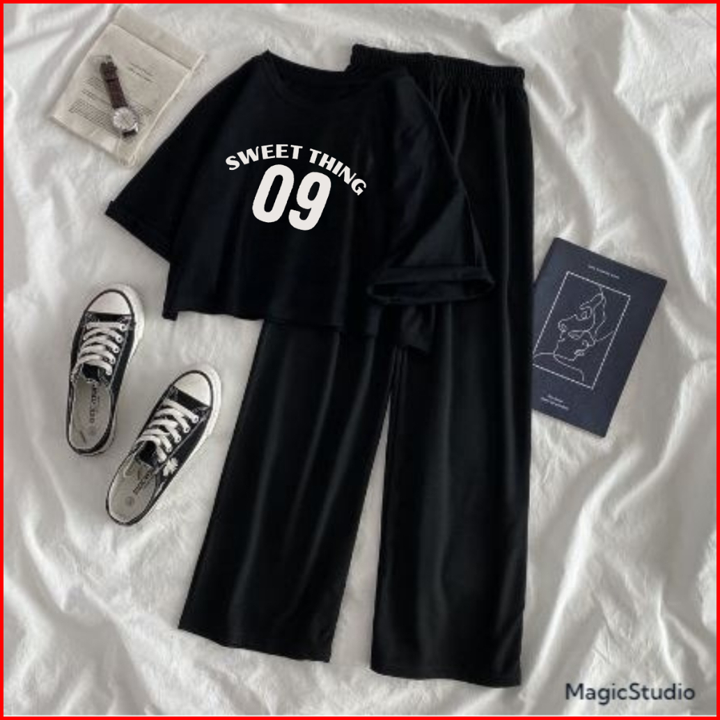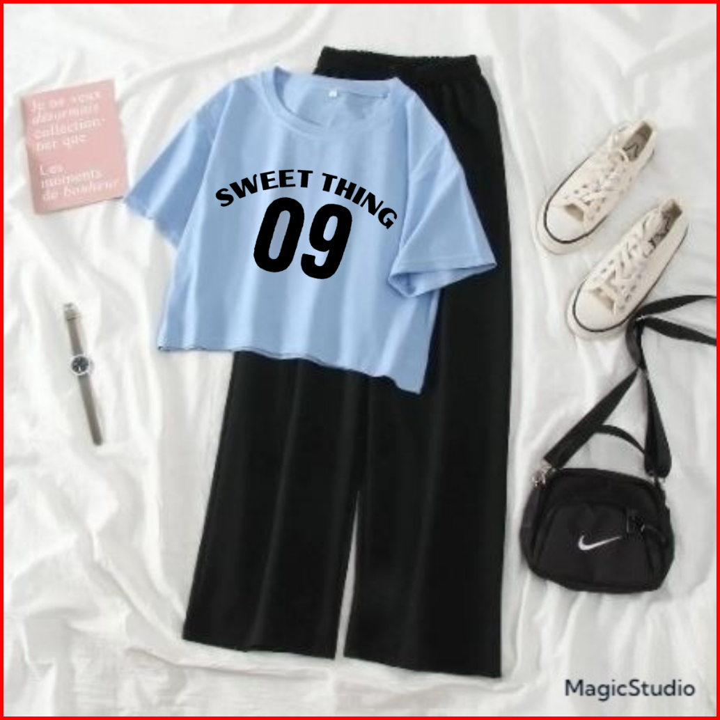 Choice Ali - Baju Setelan Kekinian Atasan Crop Top Lengan Pendek Dan Celana Kulot Sweet Thing 09
