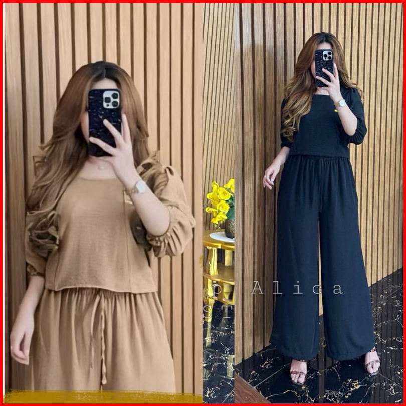 One Set Crop Alica Bahan Cringkel Airflow Setelan Crop Kekinian One Set Cringkel Airflow