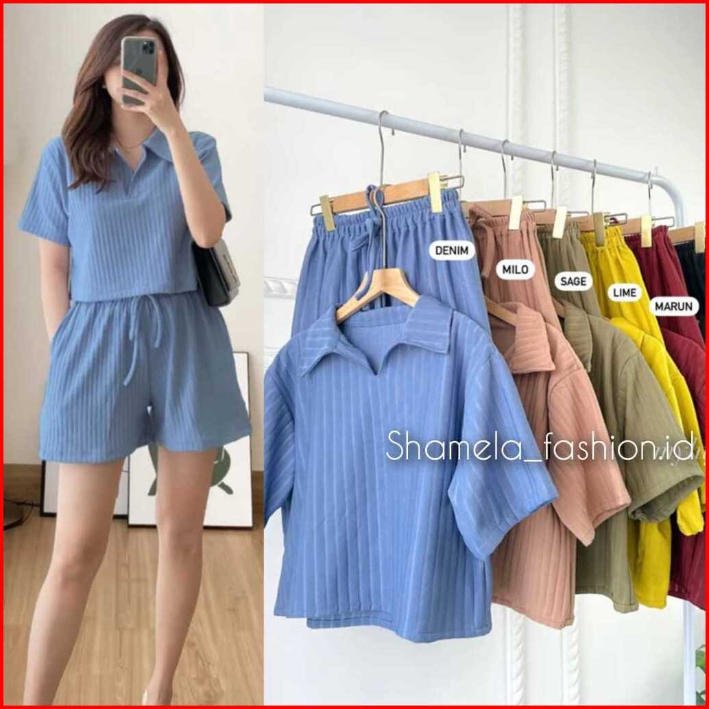 Shamela Fashion - Siera Setelan Crop Oneset Hornet Wanita Premium Termurah Knit One Set