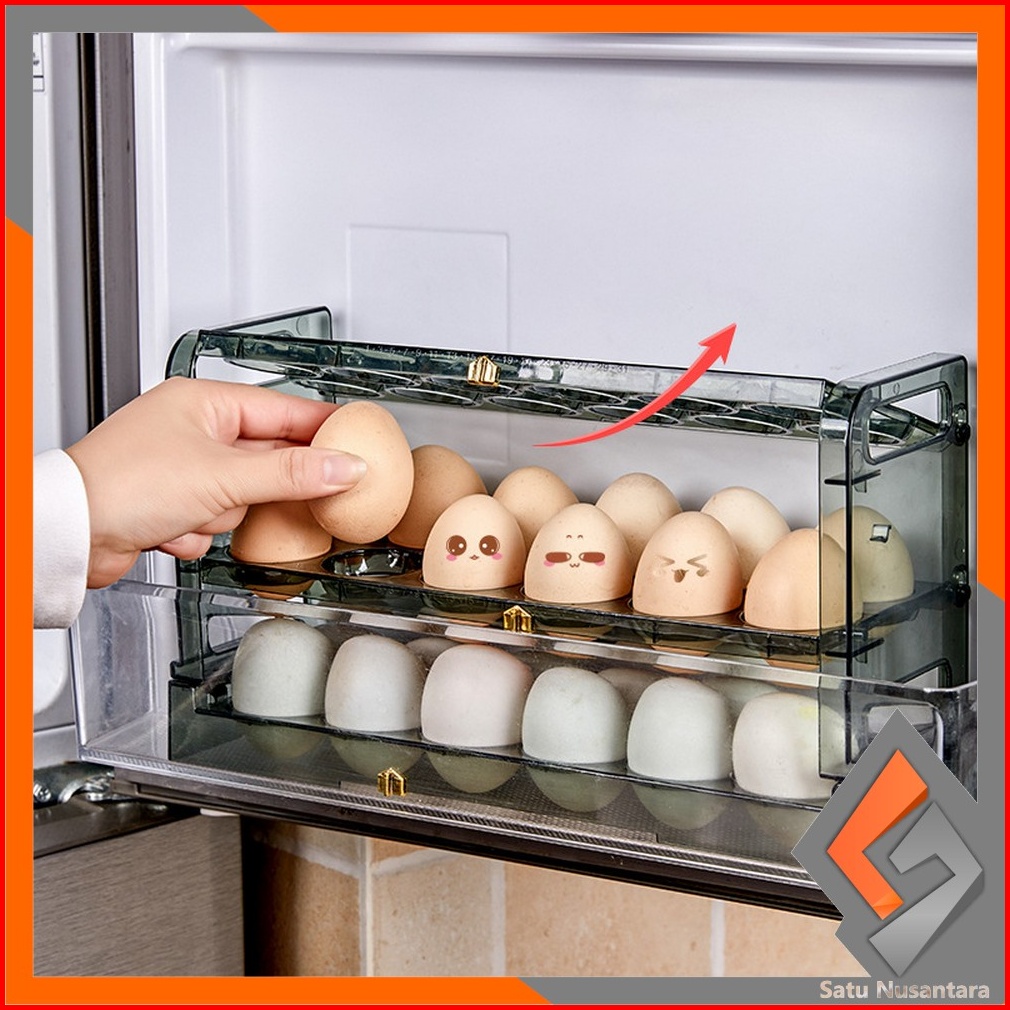 Sn-c725 Tempat Telur 36 Lubang Sekat Rak Penyimpanan Telur 3 Tingkat Susun Pintu Kulkas Container Box Telor Ayam