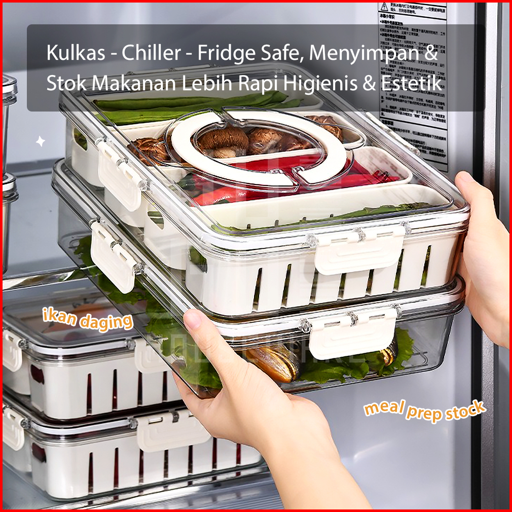 Goldii - Kotak Penyimpanan Kulkas Food Container Wadah Makanan Buah Sayur Bumbu Dapur Dengan Tutup Kedap Udara Sekat Ser