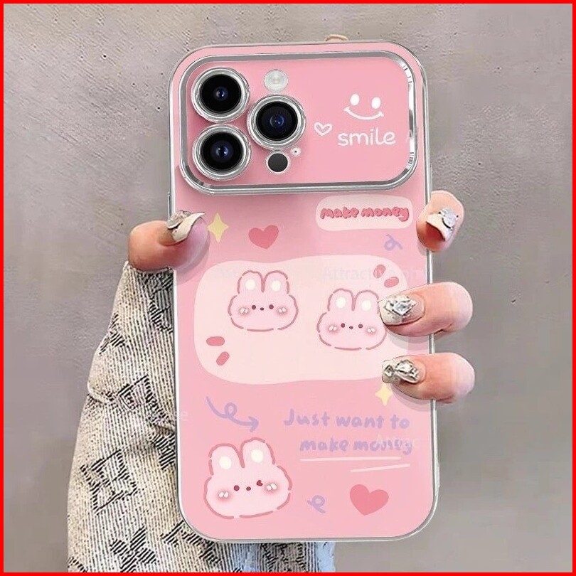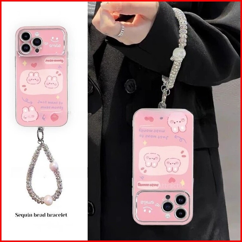 Case Iphone 13 Kelinci Merah Muda Dengan Rantai Casing Ponsel Cocok Untuk Iphone 7plus Xs Xr 11 11pro 12 12pro 12promax