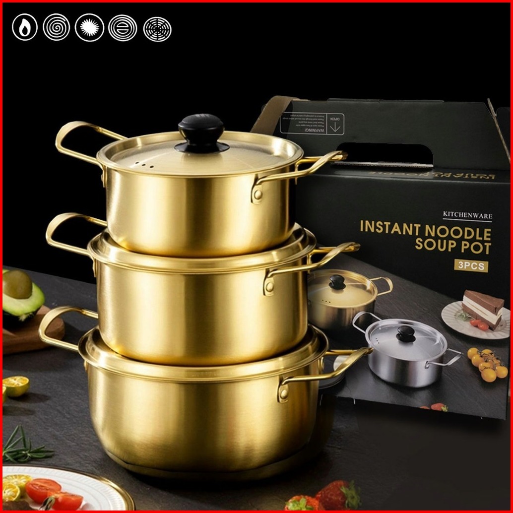 Hampers House Panci Korea Set 3in1 Panci Ramen Silver 3in1 Panci Ramen Korea Premium Panci Rebus Dengan Tutup 3in1