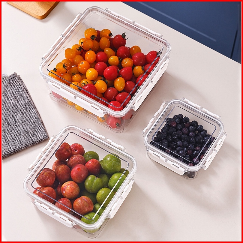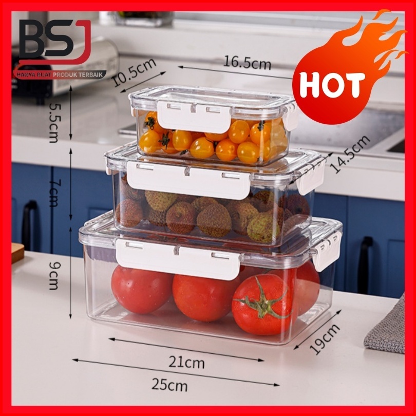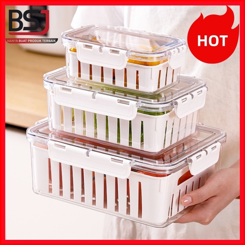 Kotak Penyimpanan Makanan Kulkas Set 3 Pcs Dengan Tutup Kedap Udara Dilengkapi Dengan Wadah Saringan