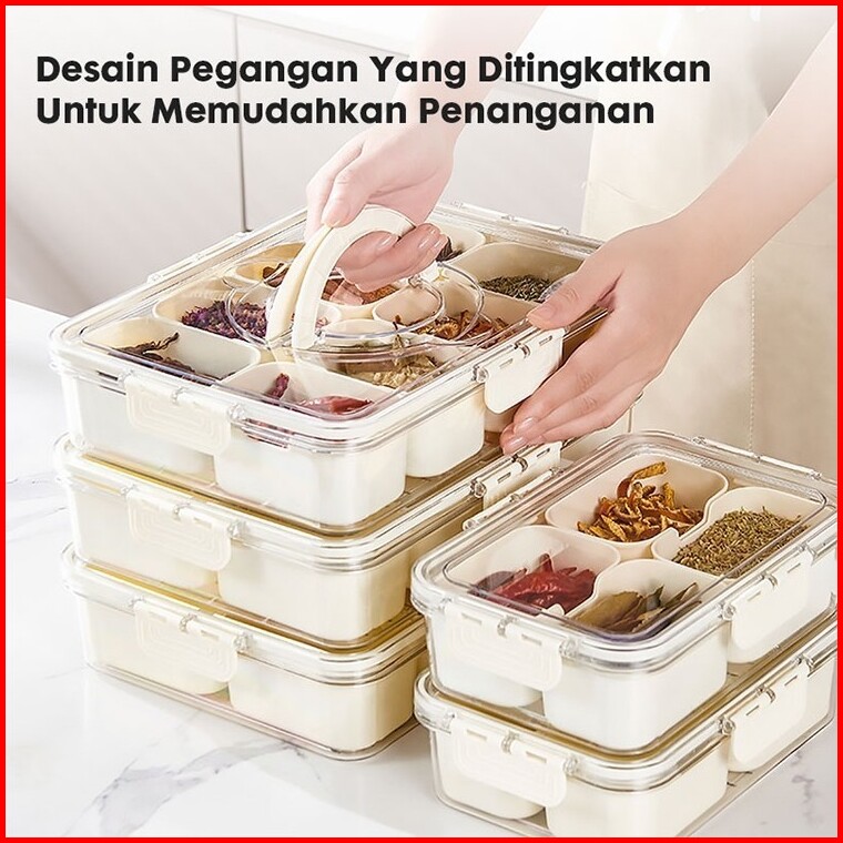 Hoptech - Food Container 4 8 Grid Kotak Penyimpanan Makanan Ringan Wadah Kulkas Kedap Udara