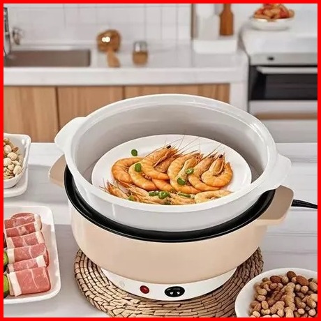 Panci Listrik Multifungsi Free Kukusan Steamer Stainless Lapis Keramik Teflon Cooking Pot Elektrik Kabel Air Peralatan