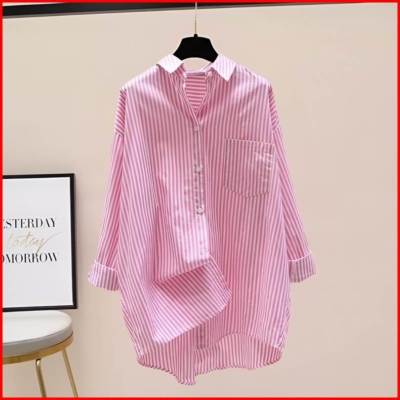 Kemeja Salur Wanita Fuka Blouse Ukuran L Xl 2xl 3xl 4xl Basic Jumbo Baju Kerja Kantor
