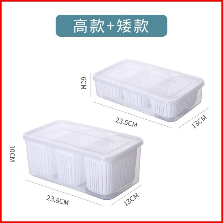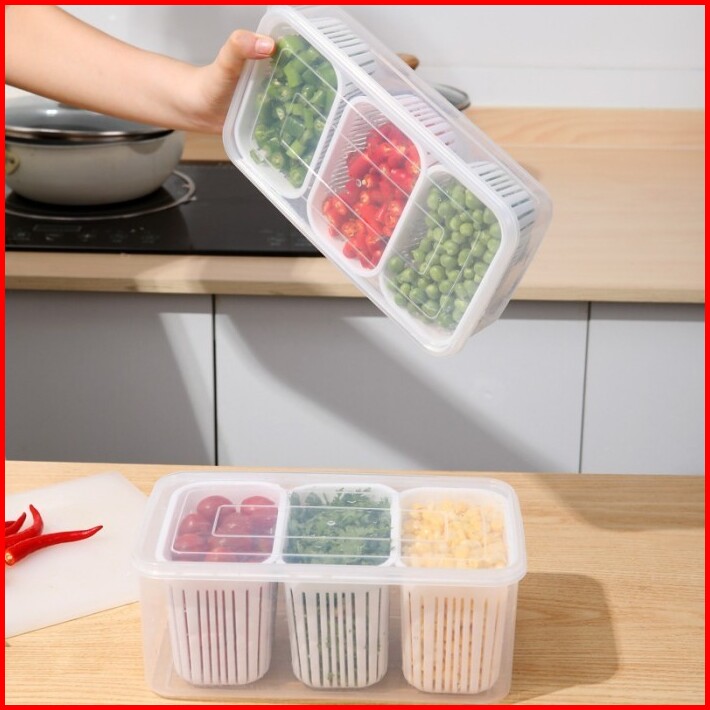 Kotak Kulkas Sekat 3 Saringan Premium Box Penyimpanan Makanan Sayur Buah Refrigerator