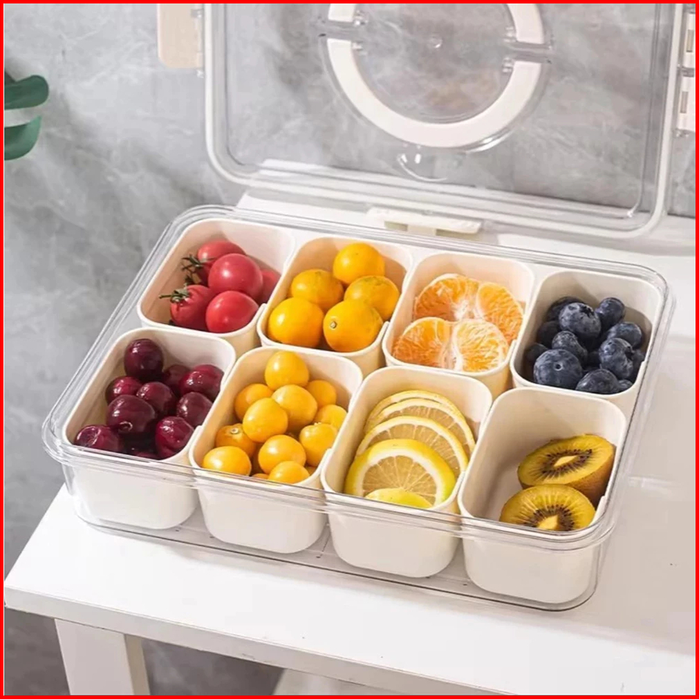Kotak Penyimpanan Makanan 8 Sekat Sayuran Buah Food Container Ringan Tempat Makan Bumbu Dapur Wadah
