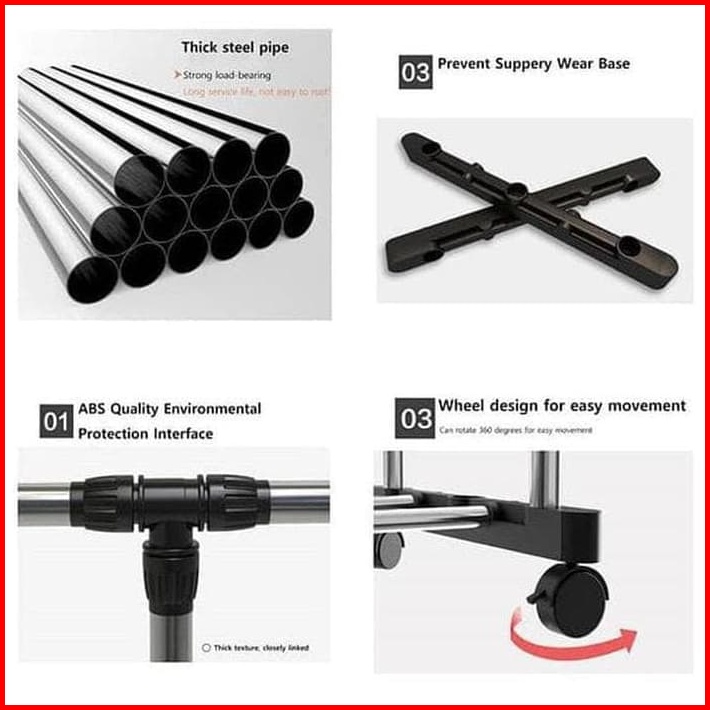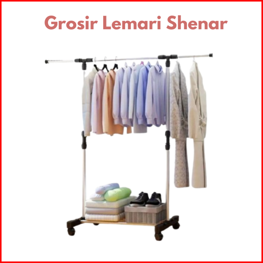 Shenar Gantungan Baju Portable Single Cloth Standing Hanger Stainless Gawang Baju Display