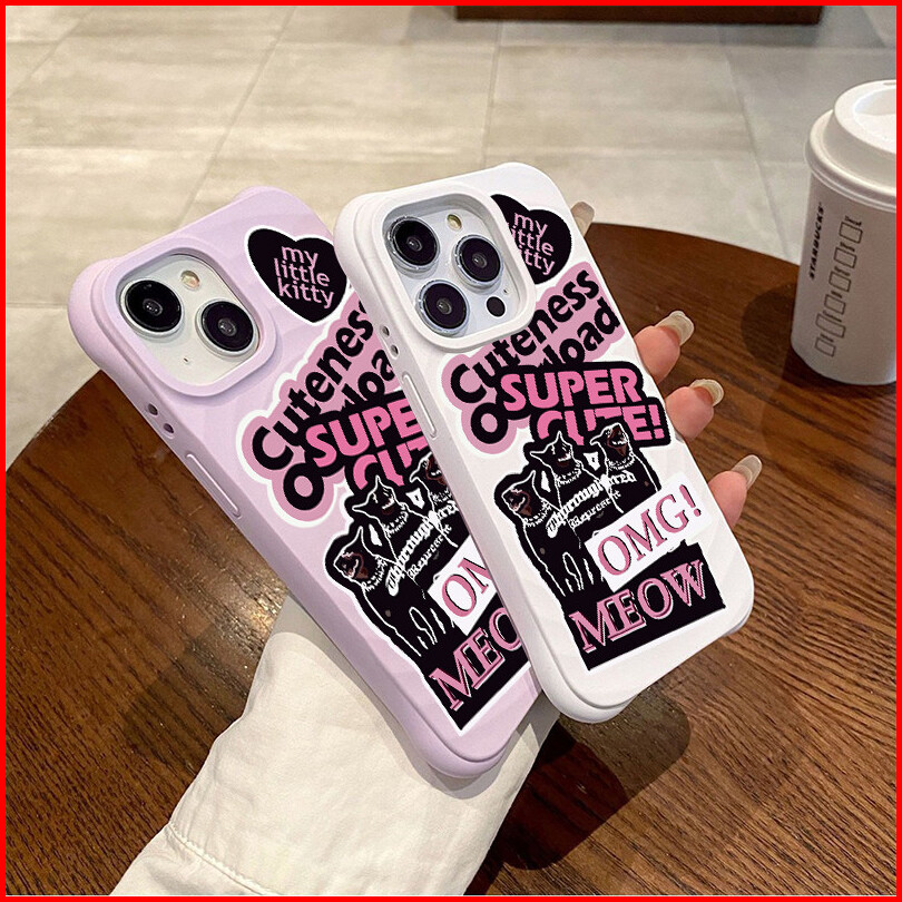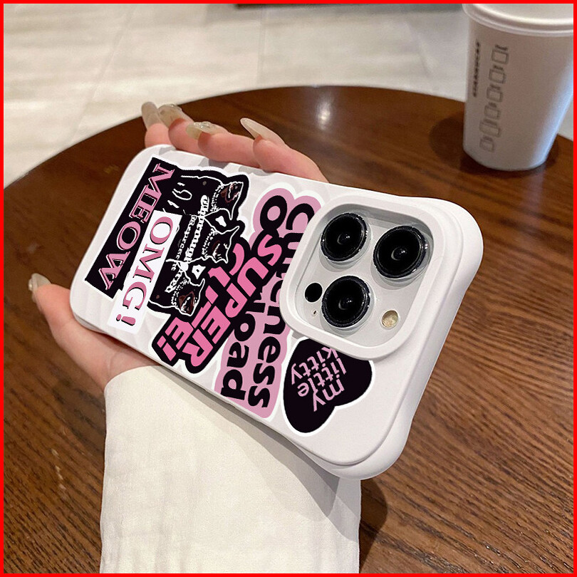 Wave Silicone Phone Case For Iphone 13 11 12 14 15 16 Pro Pro Max - Kucing Hitam Dengan Teks Lucu Design - Transparent A
