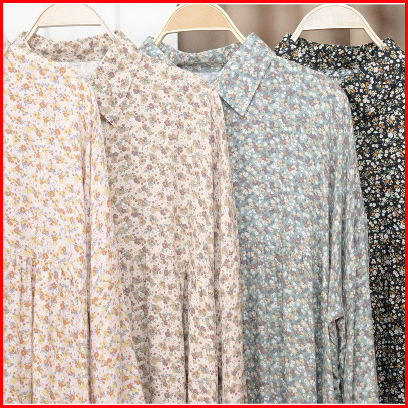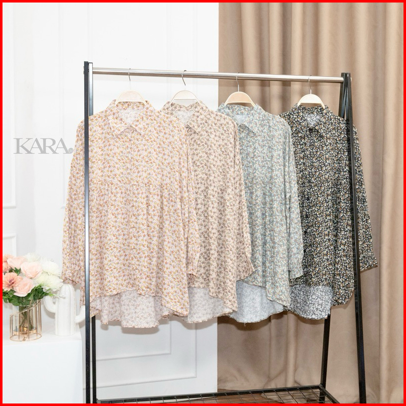 Kara.id Gaia Shirt Motif - Atasan Wanita Motif Bunga - Kemeja Wanita Oversize Lengan Panjang
