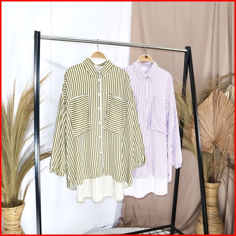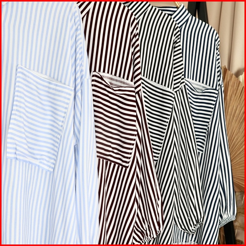 Kara.id Calista Shirt Oversized Jumbo Kemeja Salur Kemeja Atasan Wanita Lengan Panjang Stripe Shirt