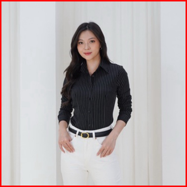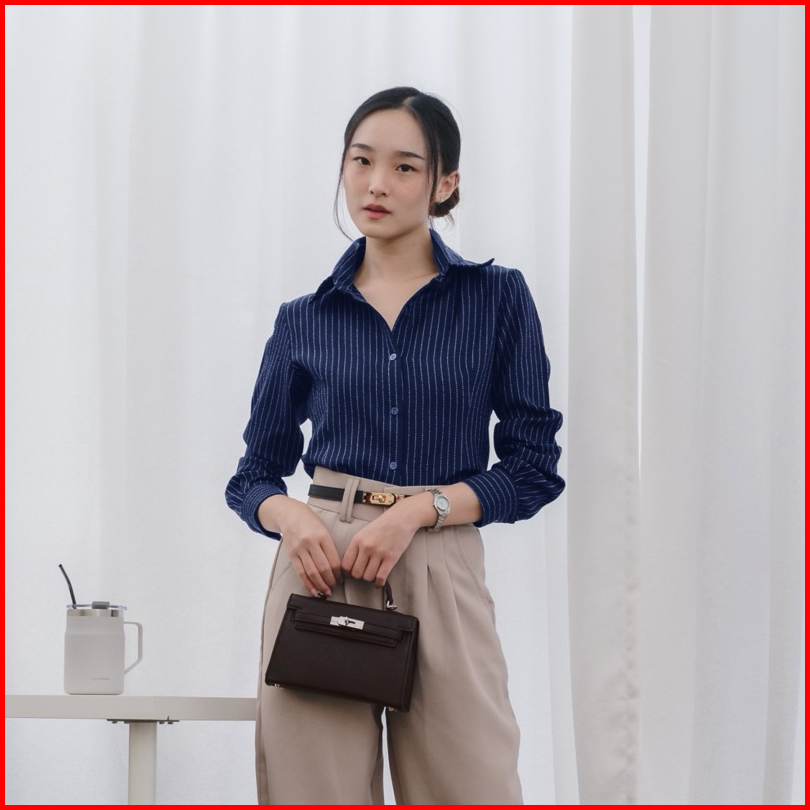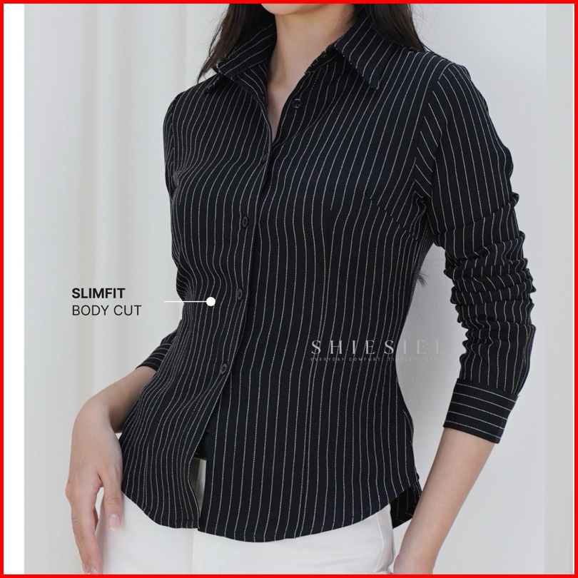 Kelly Fitted Shirt - Kemeja Slimfit Wanita Lengan Panjang - Blouse - Adjustable Waist Top - Fitted Shirt