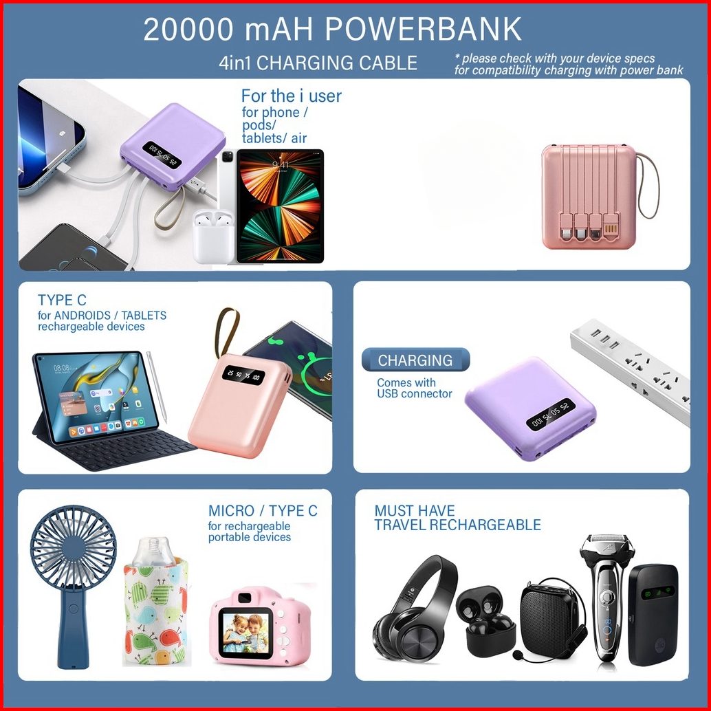 Mini Size Powerbank 20000 Mah With 4 Usb Fast Charging Lightweight Led Senter Display Power Bank External Powerbank Port