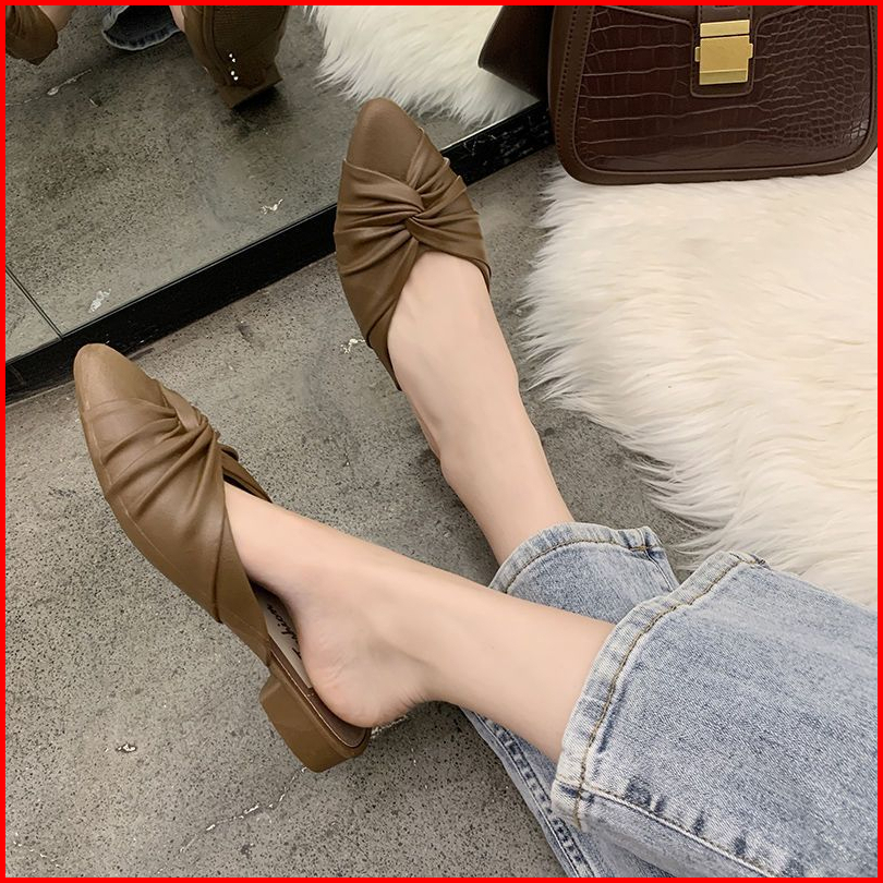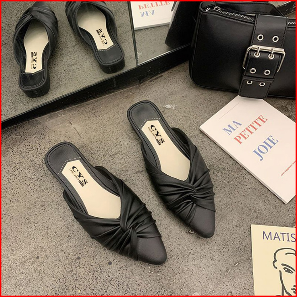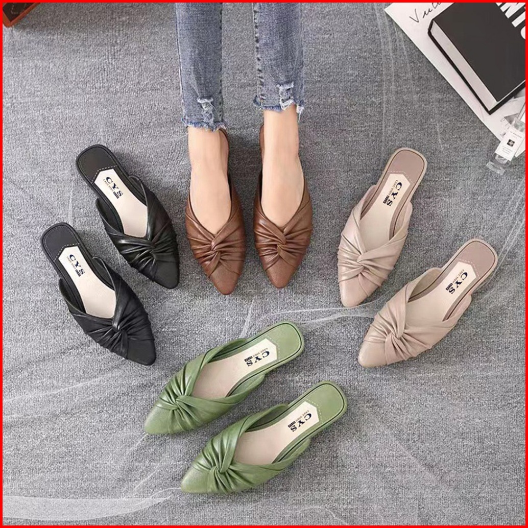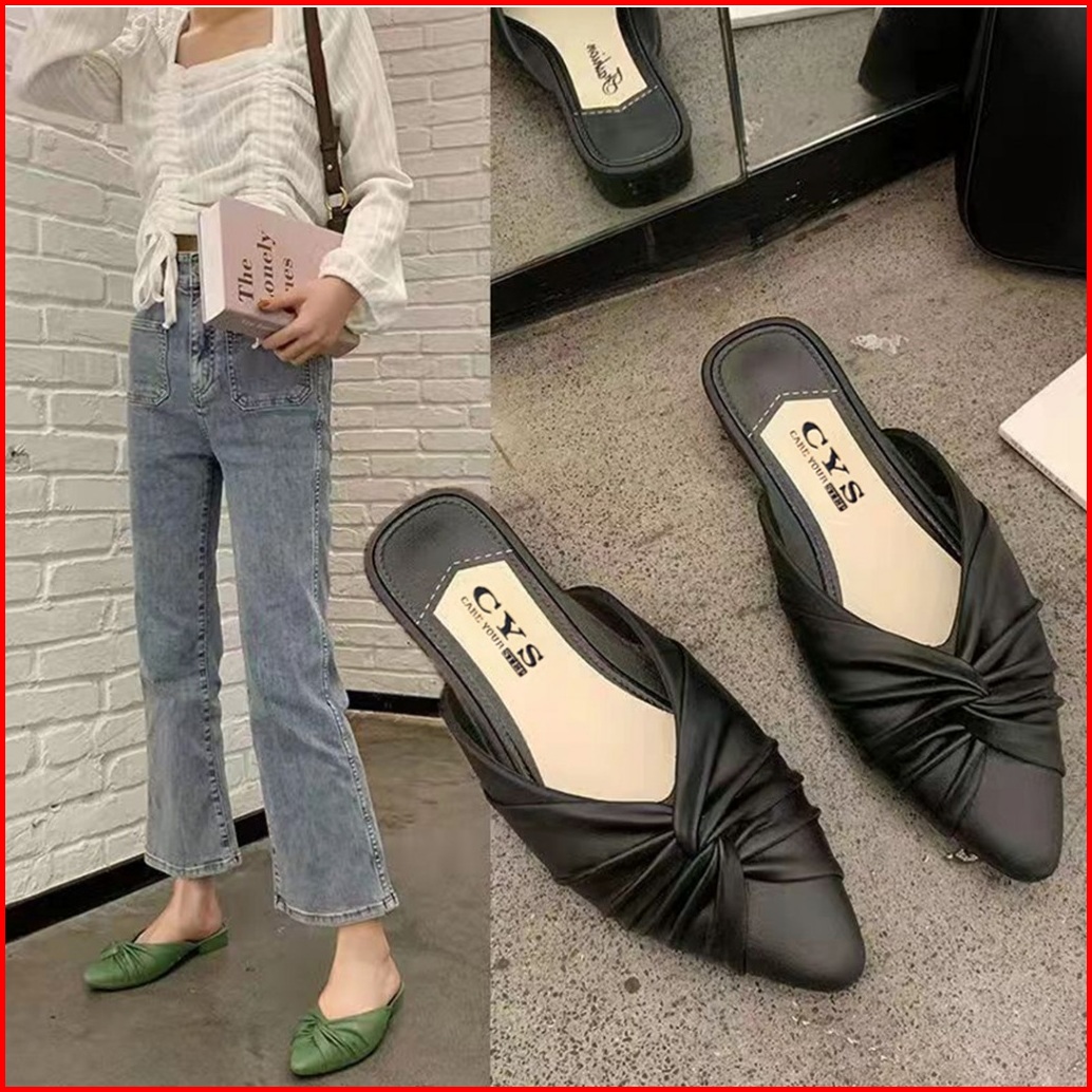 Cys Sandal Sepatu Wanita Slip On Kasual Pita Simpul Kerut Bustong Flat Korea Fashion Kekinian Spt-71