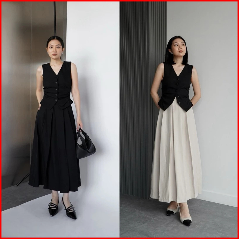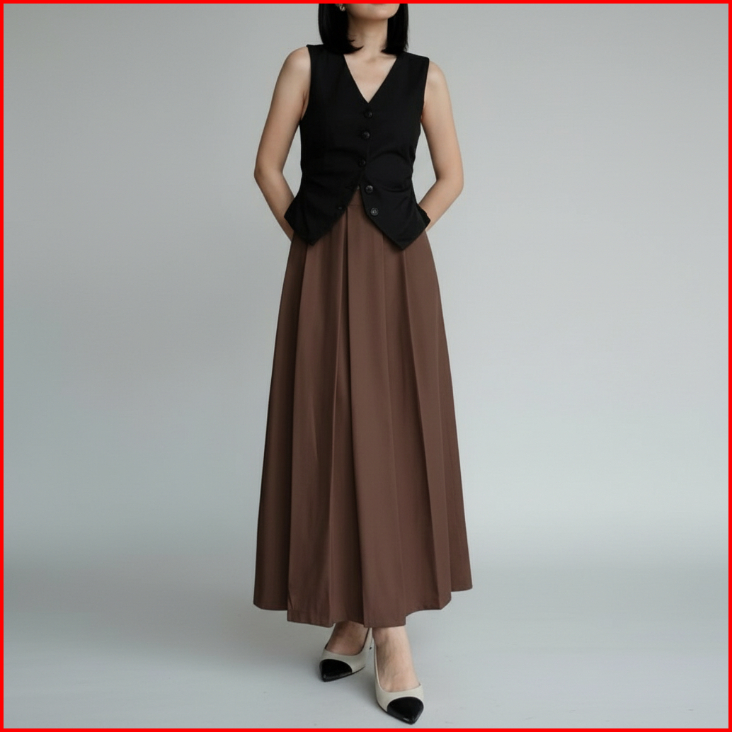 Lfry - Rok Panjang Wanita Kerja Kuliah Kantor Formal Polos Cokelat Mahogany