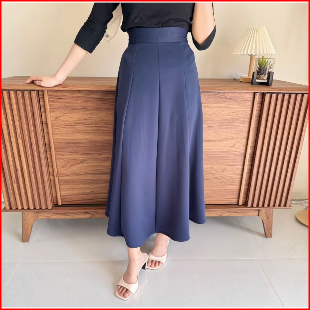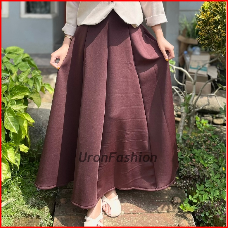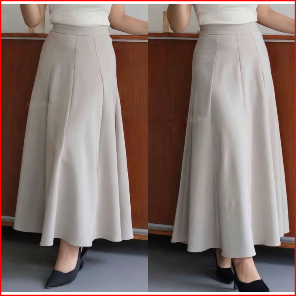 Audy Skirt - Korean Loose Maxi Skirt Rok Wanita Anti Kusut Polyester - Rok Flare Wanita - Rok Basic Polos - Maxi Skirt R