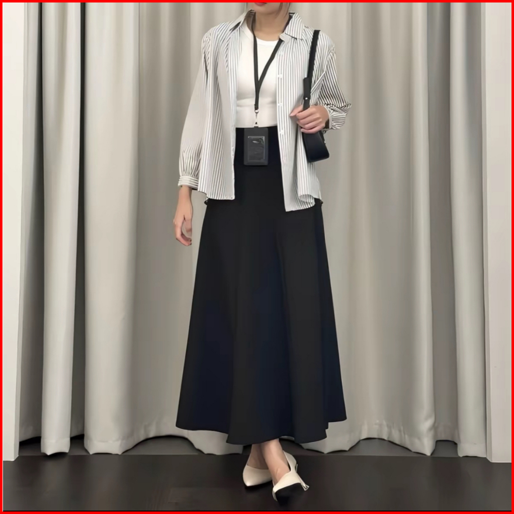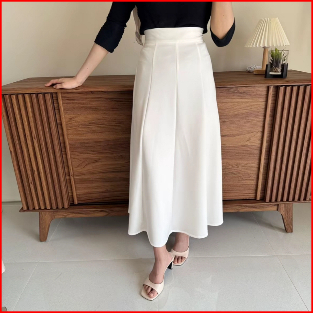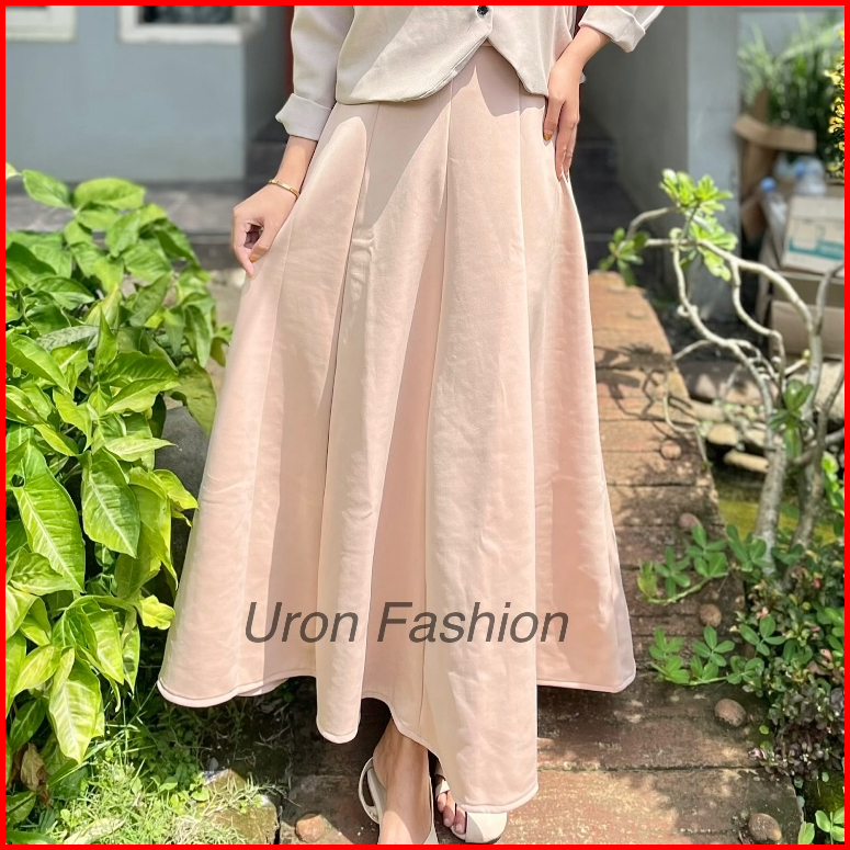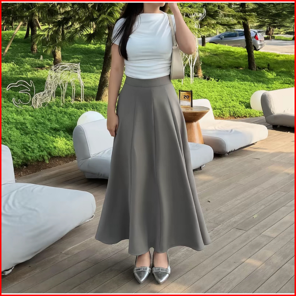 Audy Skirt - Korean Loose Maxi Skirt Rok Wanita Anti Kusut Polyester - Rok Flare Wanita - Rok Basic Polos - Maxi Skirt R