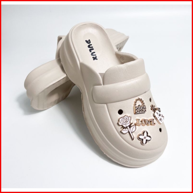 Dulux -sandal Baim Dulux 615b-2 Slipon Wanita Sandal Slipon Dulux Motif Love Wanita Size 36-40 Terbaru Sandal Baim Wanit