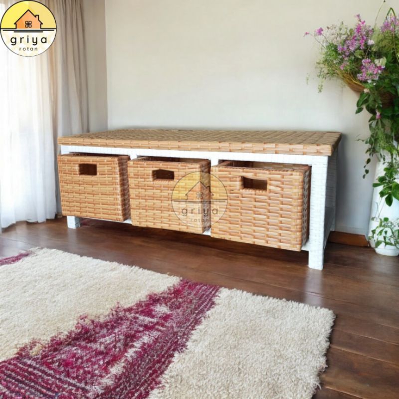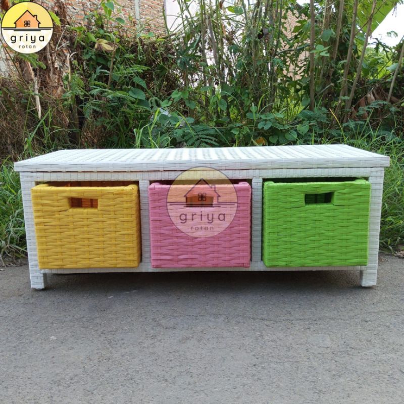 Lemari Plastik Susun 3 Minimalis Rotan Sintetis