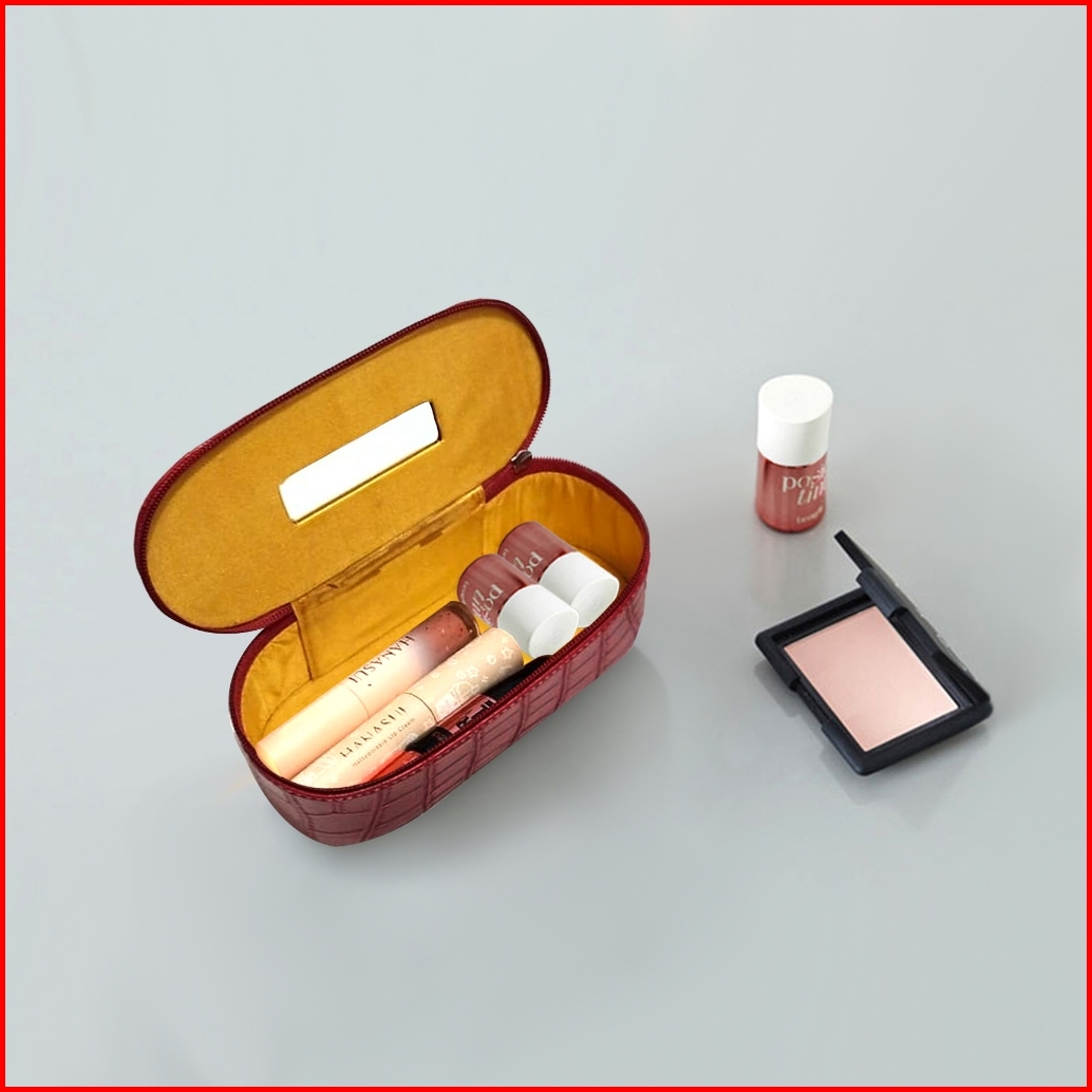 Pouch Make Up Mini Cewek Travel Organizer Kecil Tempat Lipstik Wanita Beauty Case Kotak Rias Polos