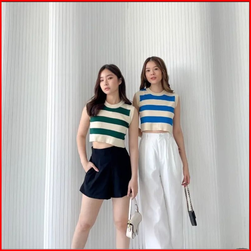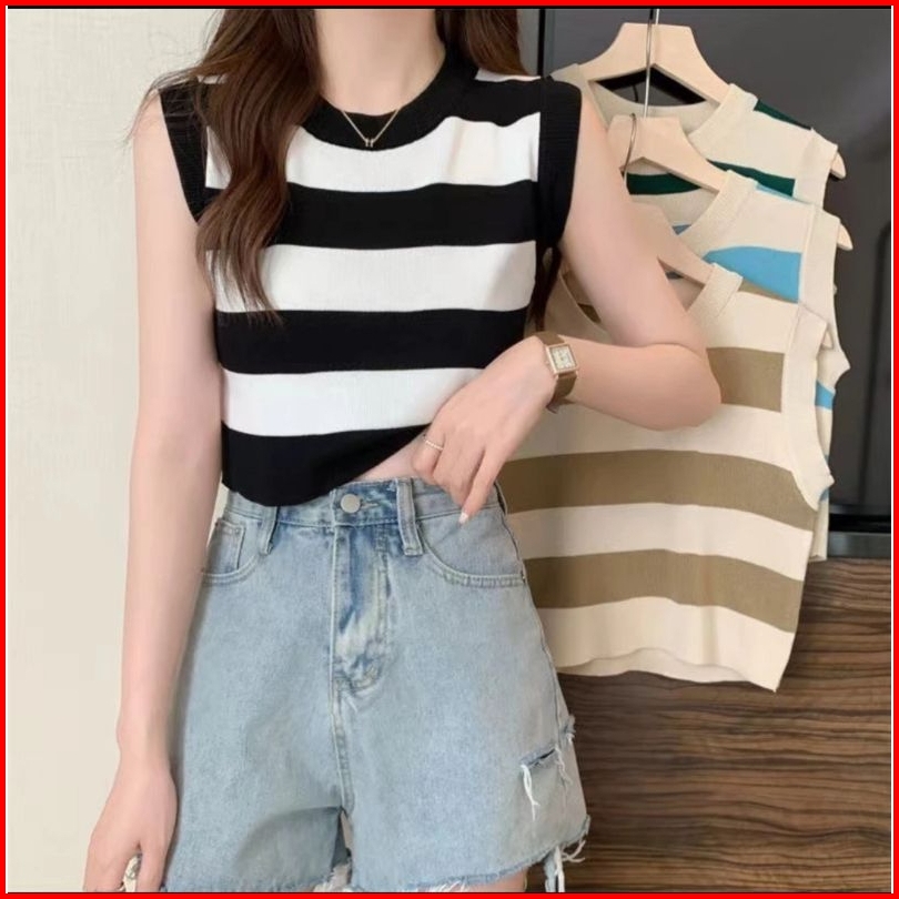 Tank Top Wanita Stripe Casual Top Tank Top Korea
