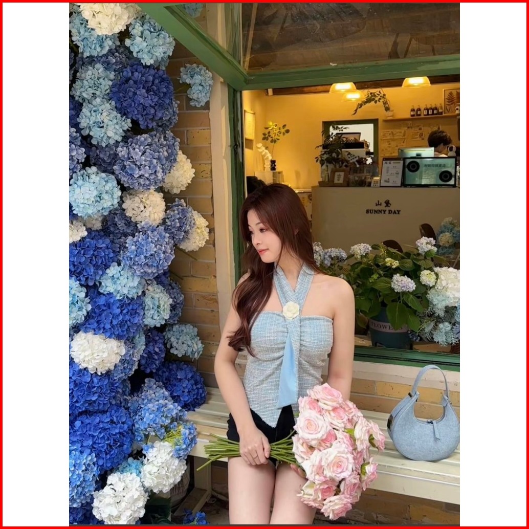 Slim Only Tanktop Atasan Halter Ornamen Bunga Ootd Atasan Seksi Lucu Halterneck