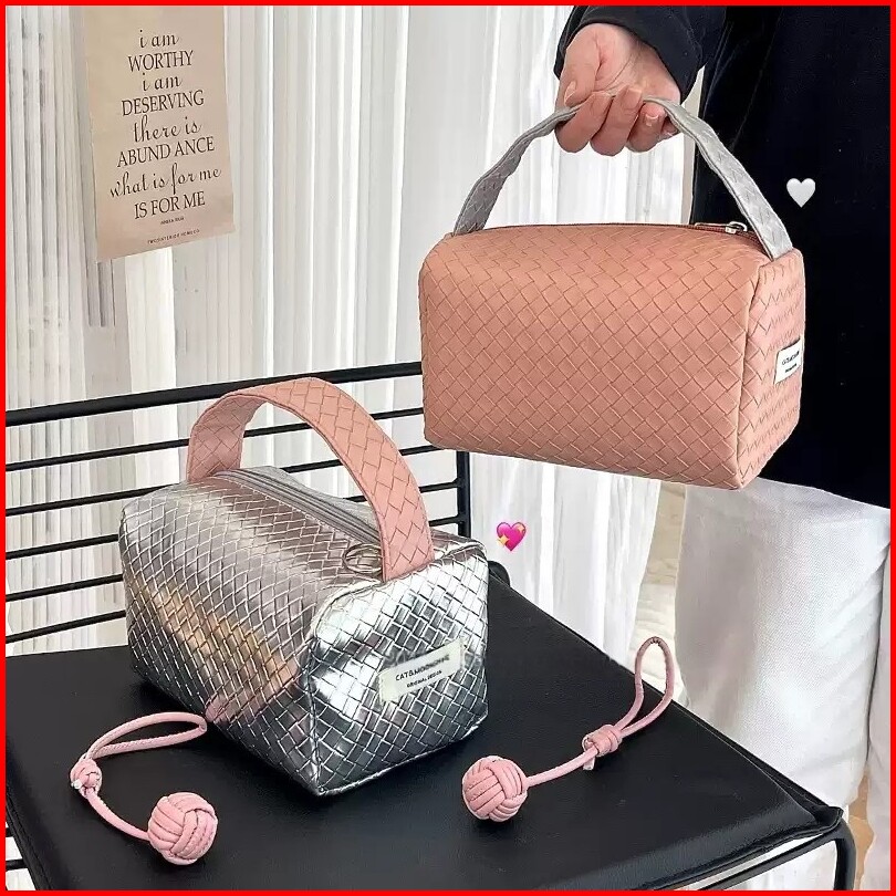 Carat Pouch Cosmetic Make Up Women Handbag Aesthetic Pouch Cosmetic Make Up Silver Pink Unik Korean Makeup Bag Pink With