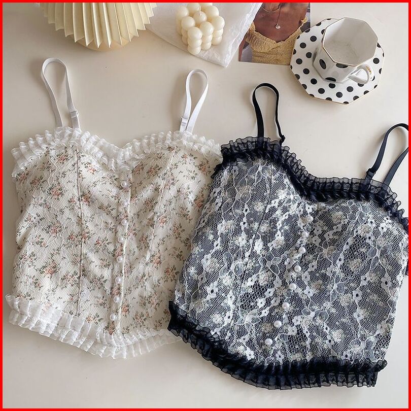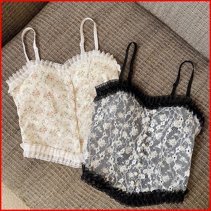 Yang S Fashion - Bra Bh Tanktop Crop Korean Lace Floral Vintage Wanita Motif Bunga Retro Gaya Korea
