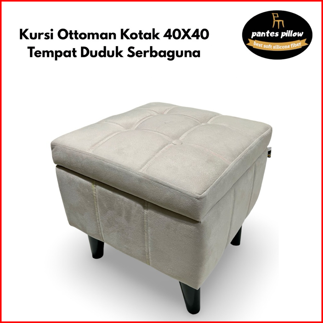Promo Kursi Ottoman Kotak - Stool Sofa Putih 40x40 Tempat Duduk Serbaguna Penyimpanan Minimalis