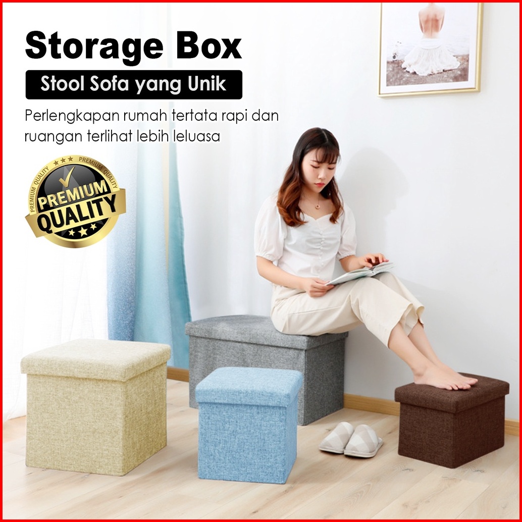 Storage Box Lipat Bangku Kotak Multifungsi Tempat Penyimpanan Stool Lipat Aesthetic