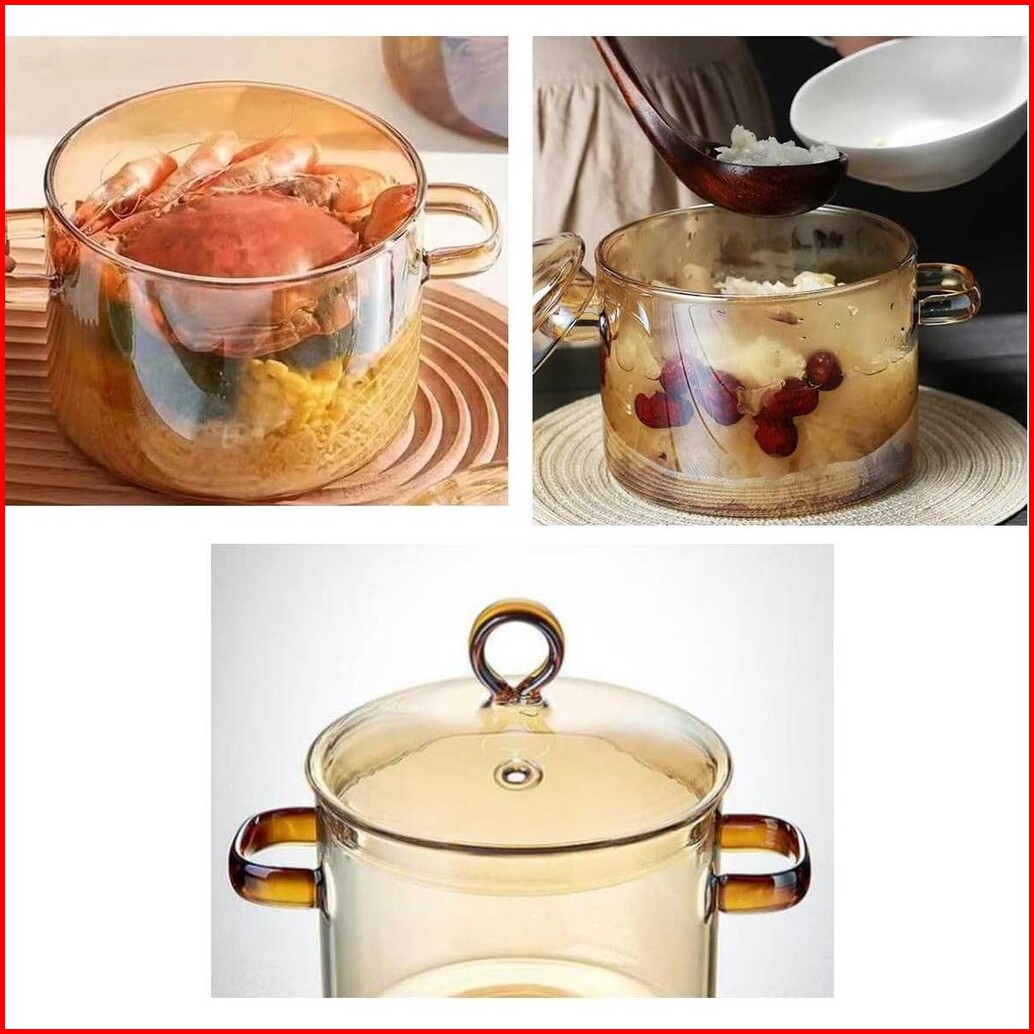 One Two Cups Panci Kaca Glass Cooking Pot Borosilicate Tahan Panas Api - Ywj-1265