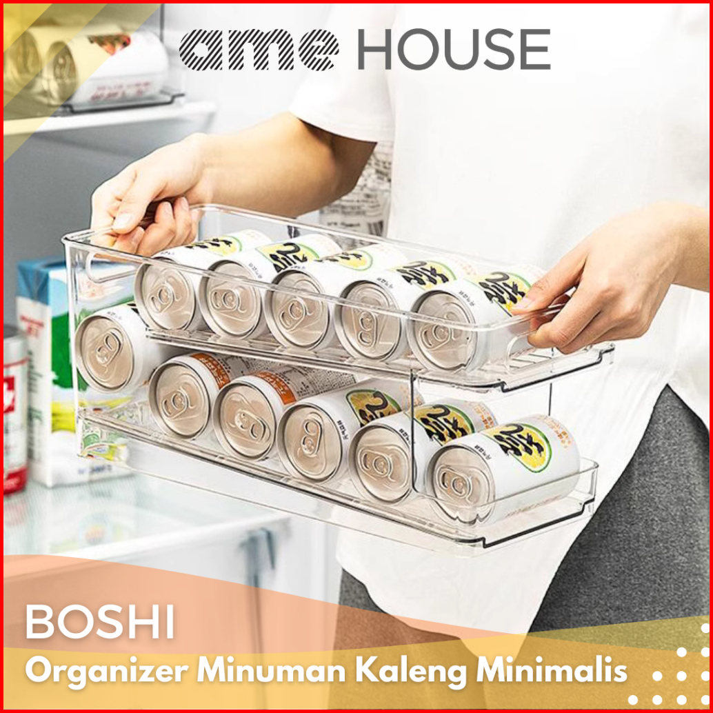 Ame Boshi Wadah Organizer Minuman Kaleng Minimalis Storage Stack Minuman Kaleng Estetis Storage Can Transparan Penyimpan