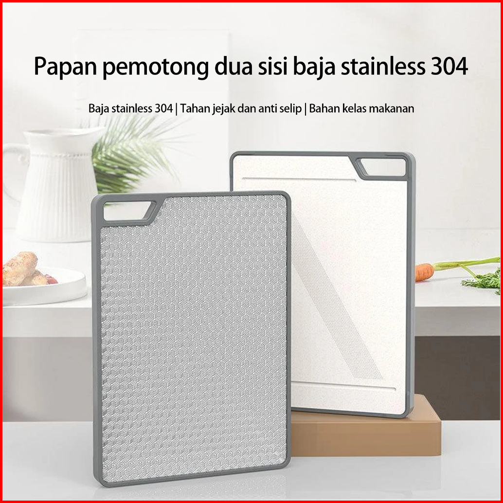 Guanjie - Talenan Stainless 2 Sisi Alas Potong Double Sided Chopping Board Stainless Steel