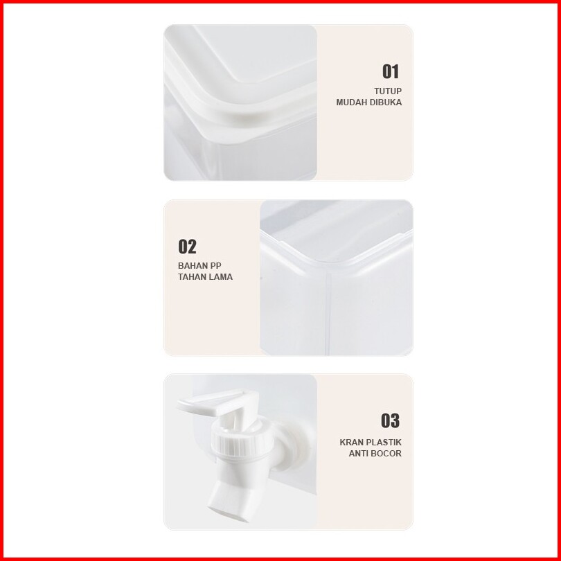 U-living Dispenser Air Kulkas 5l Wadah Minuman Dingin Fridge Jug Dispenser Dengan Keran Tutup Tb002