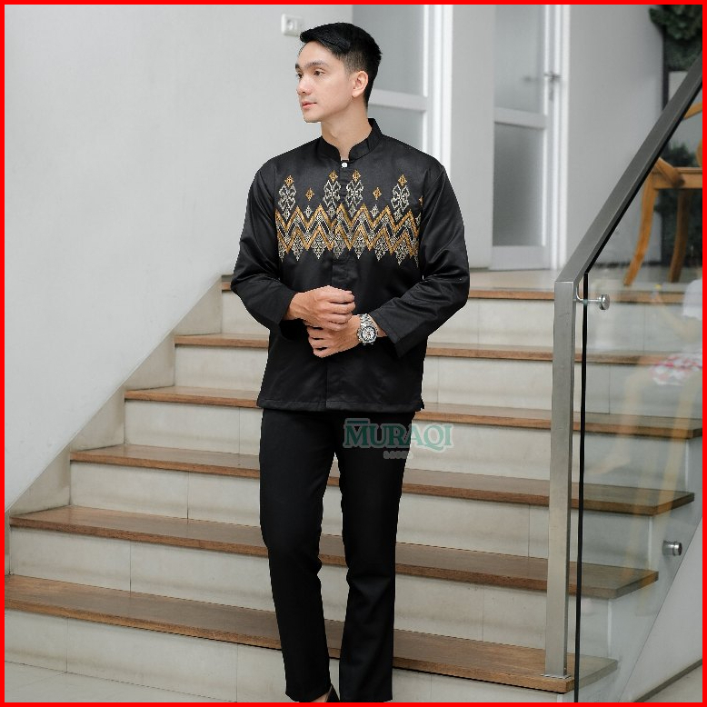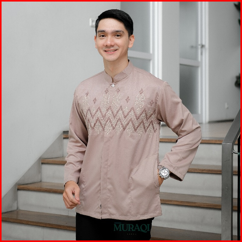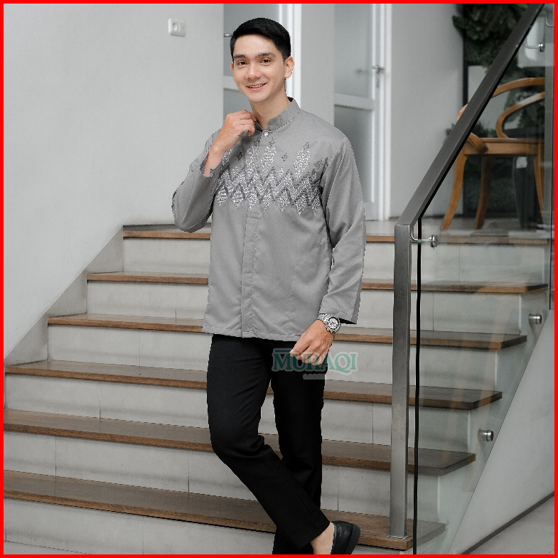 Baju Koko Pria Lengan Panjang Bordir Modern Premium Kerah Sanghai - Muraqi Label